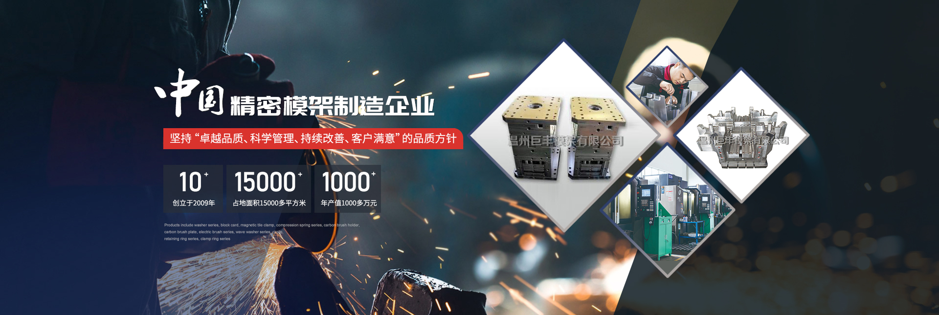 浙江巨豐模架有限公司創(chuàng)立于2009年,公司坐落于溫州經(jīng)濟(jì)技術(shù)開(kāi)發(fā)區(qū),占地面積15000平米,離龍灣國(guó)際機(jī)場(chǎng)5公里,是中國(guó)高精密模架領(lǐng)導(dǎo)品牌和中國(guó)制造2025實(shí)踐基地。本公司專(zhuān)業(yè)制造及對(duì)外加工高精密塑料標(biāo)準(zhǔn)模架、壓鑄模架、非標(biāo)模架、高速?zèng)_壓模架、高精密機(jī)械配件加工、高精密五金配件加工等金屬制造廠(chǎng)家、致力服務(wù)于汽車(chē).....MOER >>